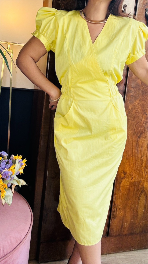 Liste de souhaits Ajouter pour comparer Robe jaune midi T38 68,00 € Ajouter au panier Quick view Robe jaune soleil vintage, manches bouffantes et dos ajouré — un concentré de bonne humeur et de féminité T38